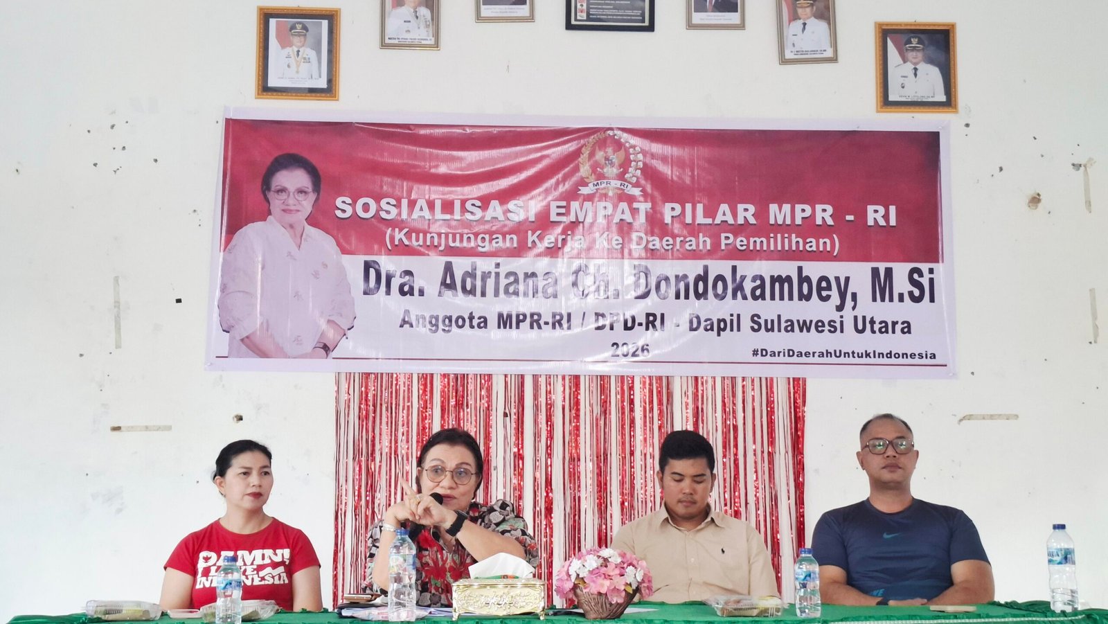 “Kehadiran Ibu Adriana di Talawaan memberikan energi positif bagi kami di tingkat daerah. Saya sangat mendukung kegiatan ini karena 4 Pilar adalah fondasi yang menjaga kerukunan warga kita. Kami di DPRD Minahasa Utara berkomitmen untuk terus bersinergi agar nilai-nilai yang disampaikan hari ini benar-benar terimplementasi dalam kebijakan dan kehidupan sosial masyarakat kita.”kata Yodi yang juga Sekretaris DPC PDIP Minut.